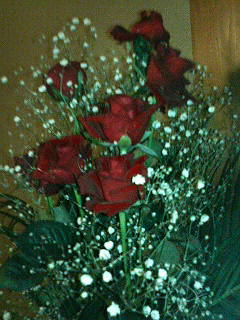 画像はその時いただいたバラの花束です。(きれいに撮れない……携帯の限界かっ)